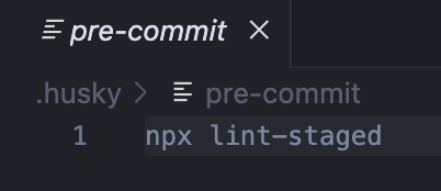 커밋 직전에 lint-staged를 실행하도록 아래 명령어로 pre-commit hook을 추가한다.
